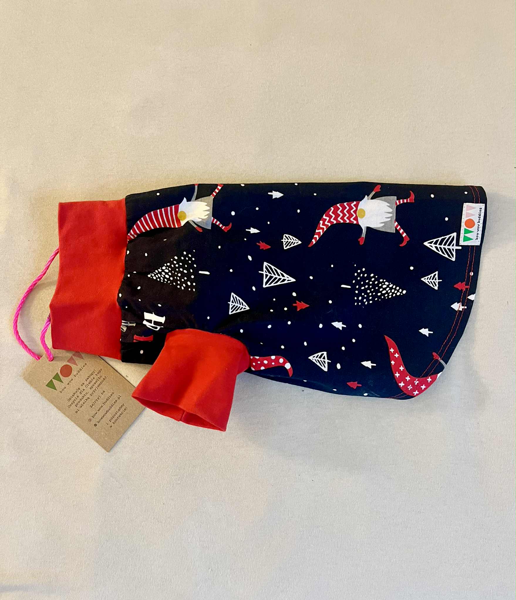 Kubraczek dla małego pieska uszyliśmy z wysokiej jakości bawełnianej dzianiny. Nie ma tu metek, ani szwów, które mogłyby drapać, czy powodować u dziecka dyskomfort.